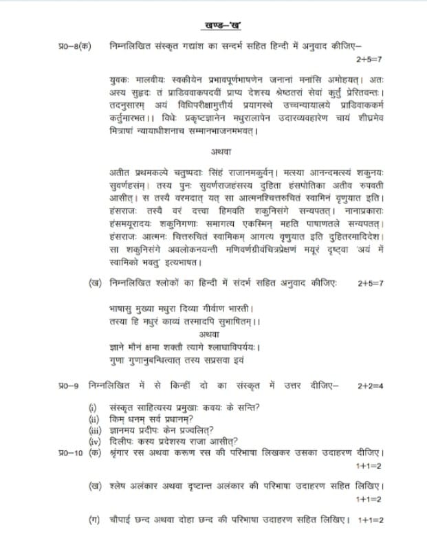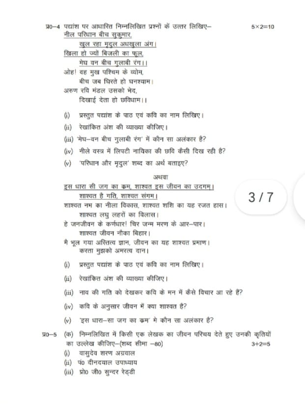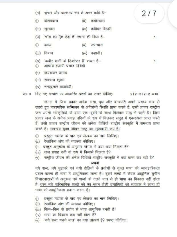- अपठित गद्यांश/काव्यांश: 15 मिनट।
