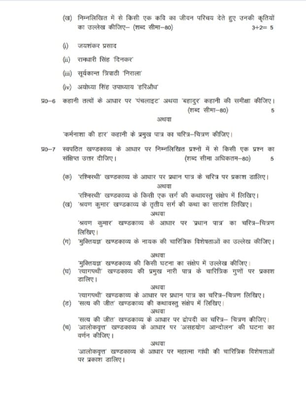 5. पाठ्यपुस्तक आधारित प्रश्न (गद्य/पद्य खंड, 20-25 अंक)