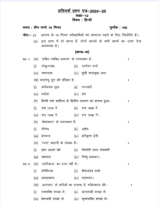 यह मॉडल पेपर कक्षा 12 हिंदी के विषयों को समाहित करते हुए छात्रों को विभिन्न प्रकार के प्रश्नों से निपटने की तैयारी देने के लिए तैयार किया गया है।