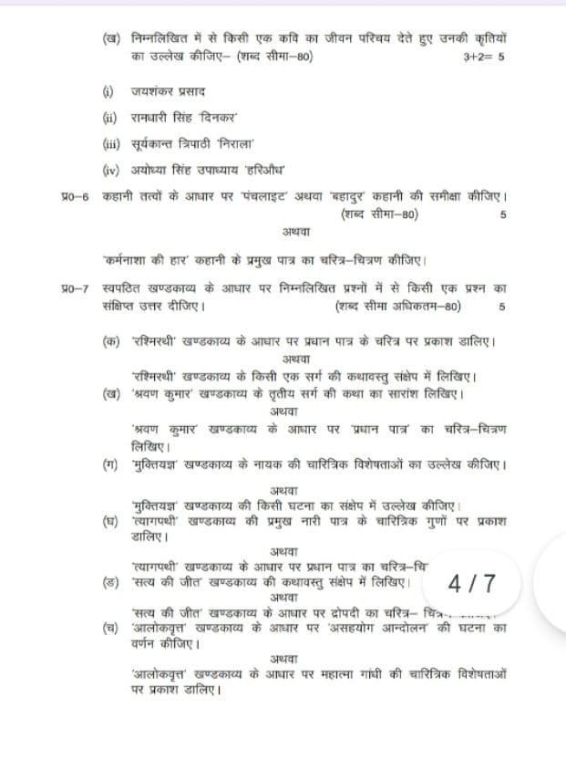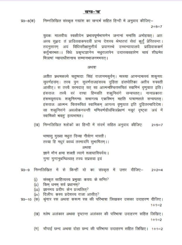 खंड B – गद्य और पद्य से संबंधित विस्तृत उत्तर (30 अंक)