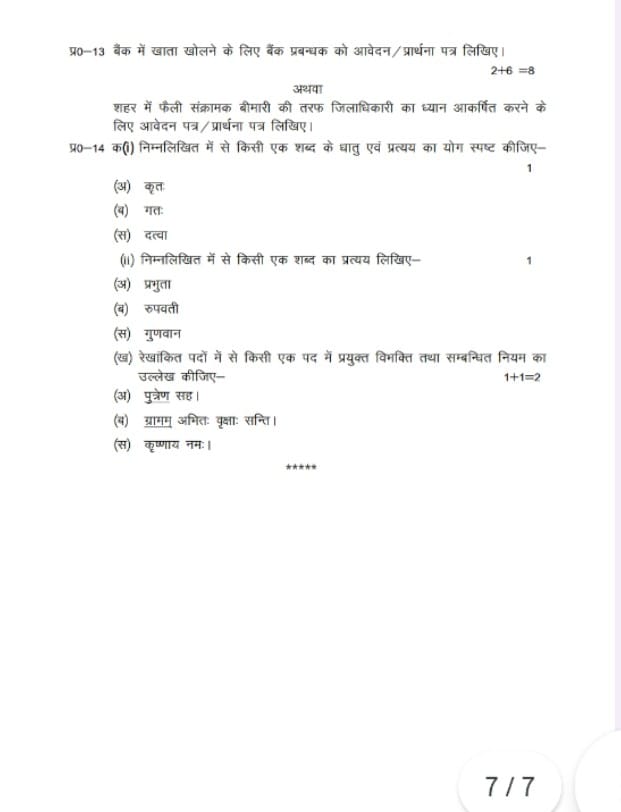 प्रश्न 4: निम्नलिखित व्याकरणिक प्रश्नों को हल कीजिए (20 अंक):