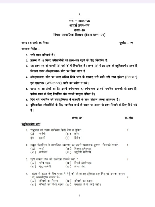 यूपी बोर्ड कक्षा 10 के सामाजिक विज्ञान के 70 नंबर वाले प्रश्न-पत्र को हल करने के लिए, एक प्रभावी स्क्रिप्ट तैयार करना जरूरी है। नीचे एक रणनीति दी गई है जो आपको बेहतर परिणाम देने में मदद करेगी: