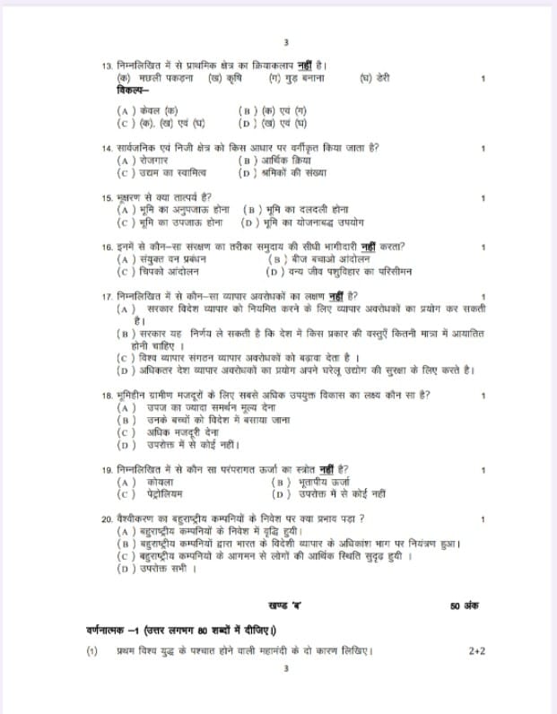 - दीर्घ उत्तर वाले प्रश्न (5-10 अंक)